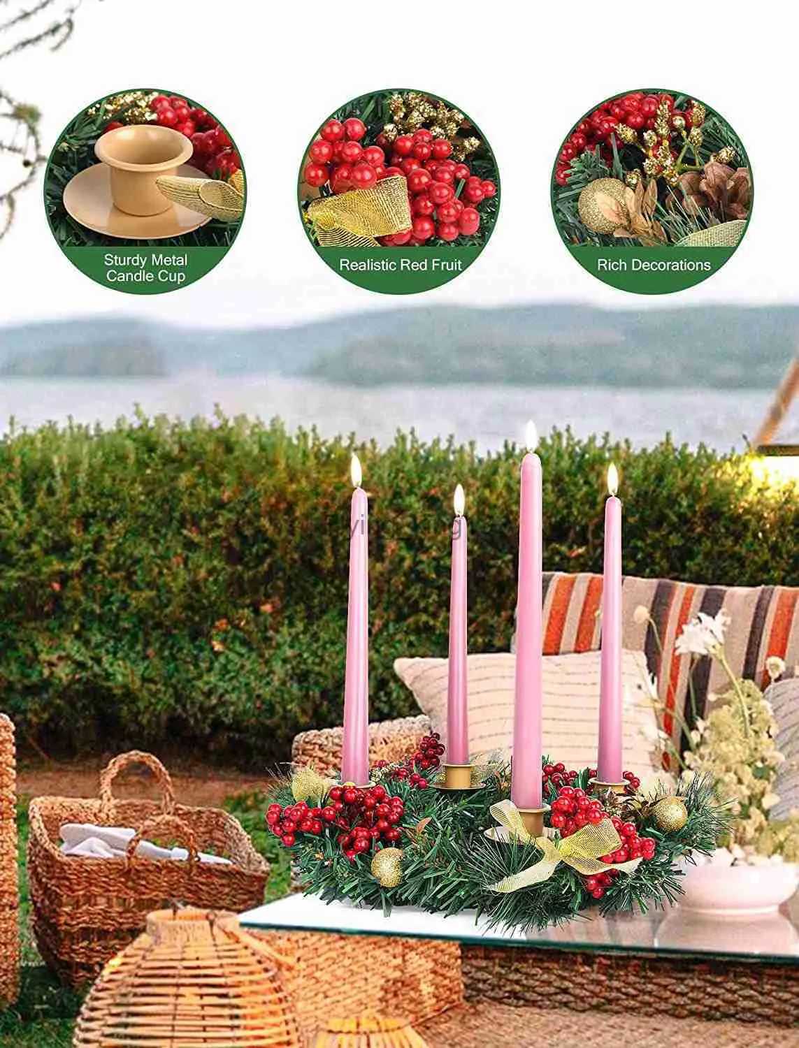 Couronne De Chandelier De Noël De 30 Cm Avec 4 Bougeoirs Pour